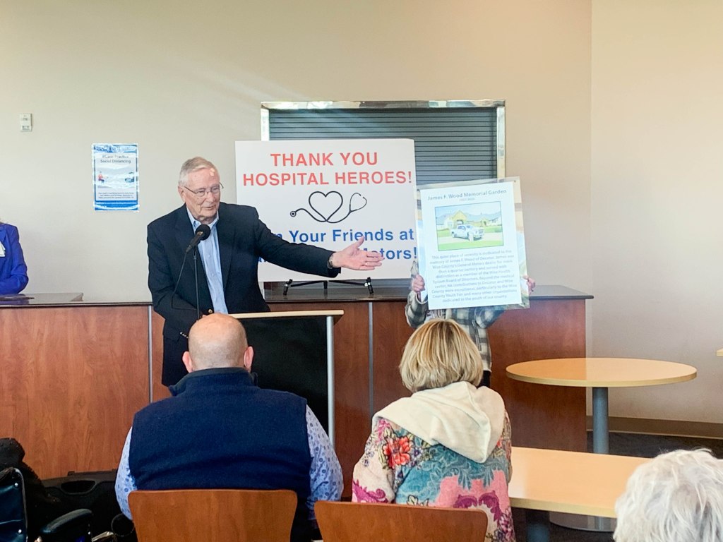 We were honored and proud to take part in the dedication of the James F. Wood Memorial Serenity Garden at the Wise Health System hospital today. The hospital meant so much to James. Thank you to everyone who came to the dedication and thank you to everyone who contributed to this beautiful tribute. James is smiling!